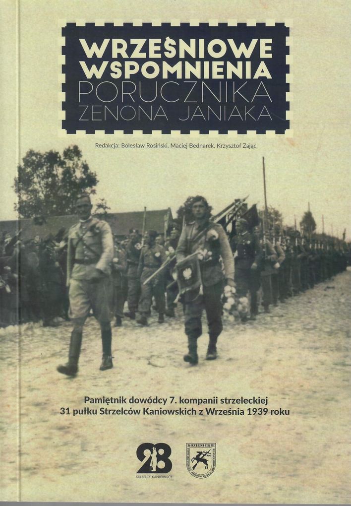"Wrześniowe wspomnienia porucznika Zenona Janiaka..." to interesujące opracowanie ukazujące wojenne losy 31 pułku Strzelców Kaniowskich przez pryzmat wspomnień oficera, dowódcy kompanii strzeleckiej. Autor pamiętnika - porucznik Zenon Janiak - w sposób bardzo plastyczny, obrazowy i żywiołowy przelał na karty pamiętnika swoje wspomnienia dotyczące czasu największej dla każdego żołnierza próby - mobilizacji i działań wojennych [z okładki].